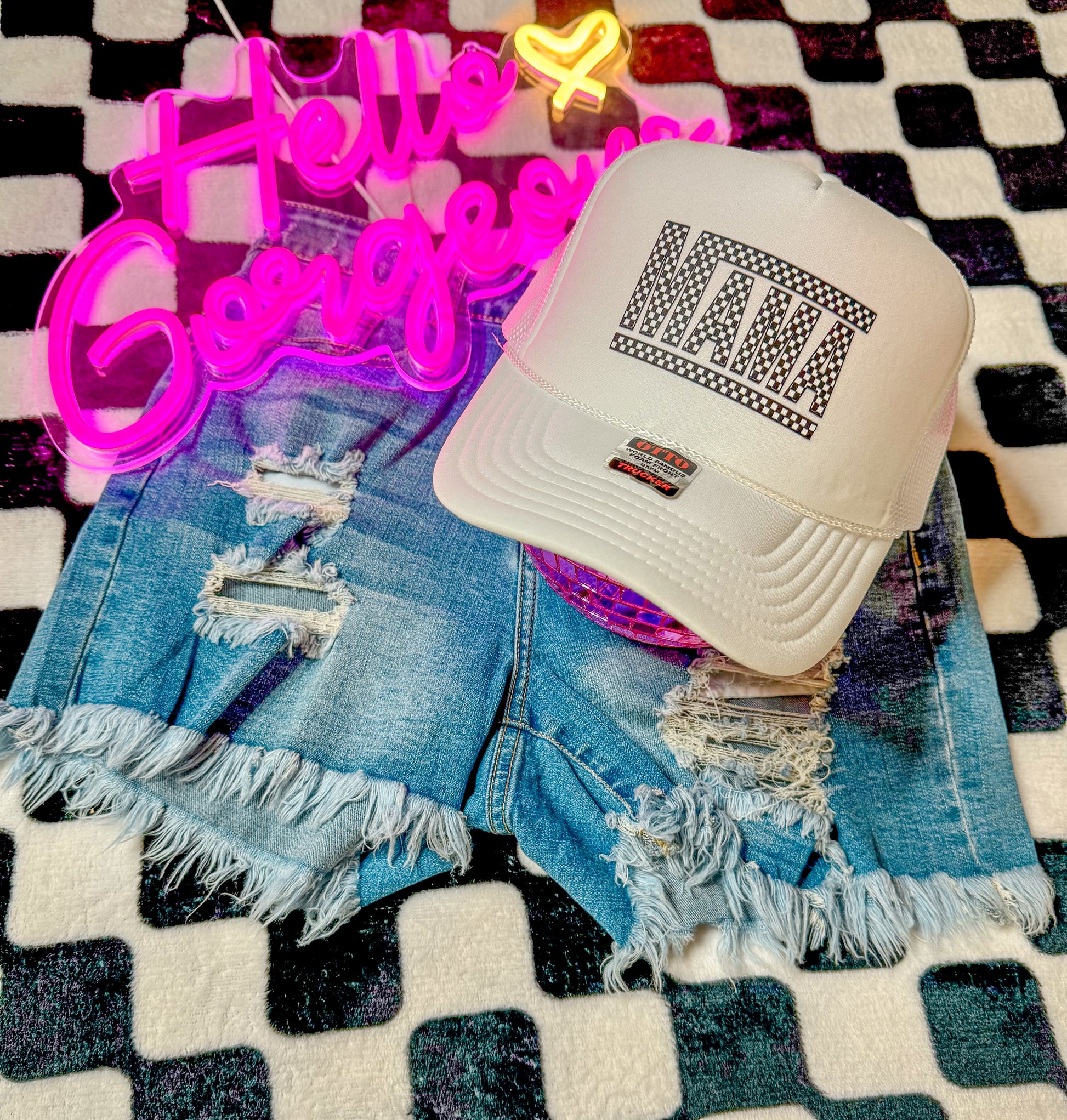 Checkered Mama Trucker Hat - Multiple Colors