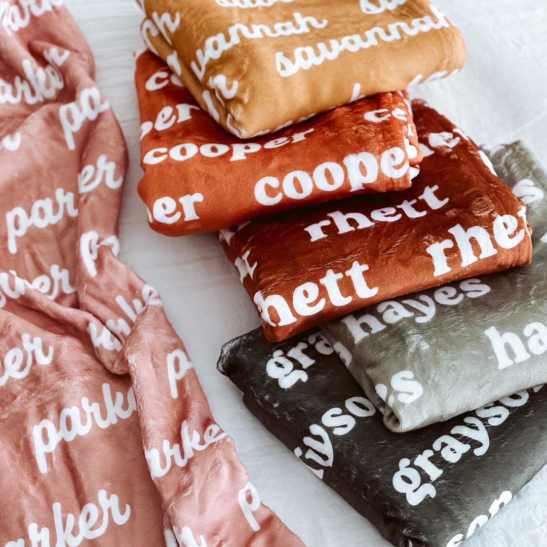 Create a Custom Name Blanket: Personalize with your chosen font and color from our Font & Color Charts for a one-of-a-kind look.