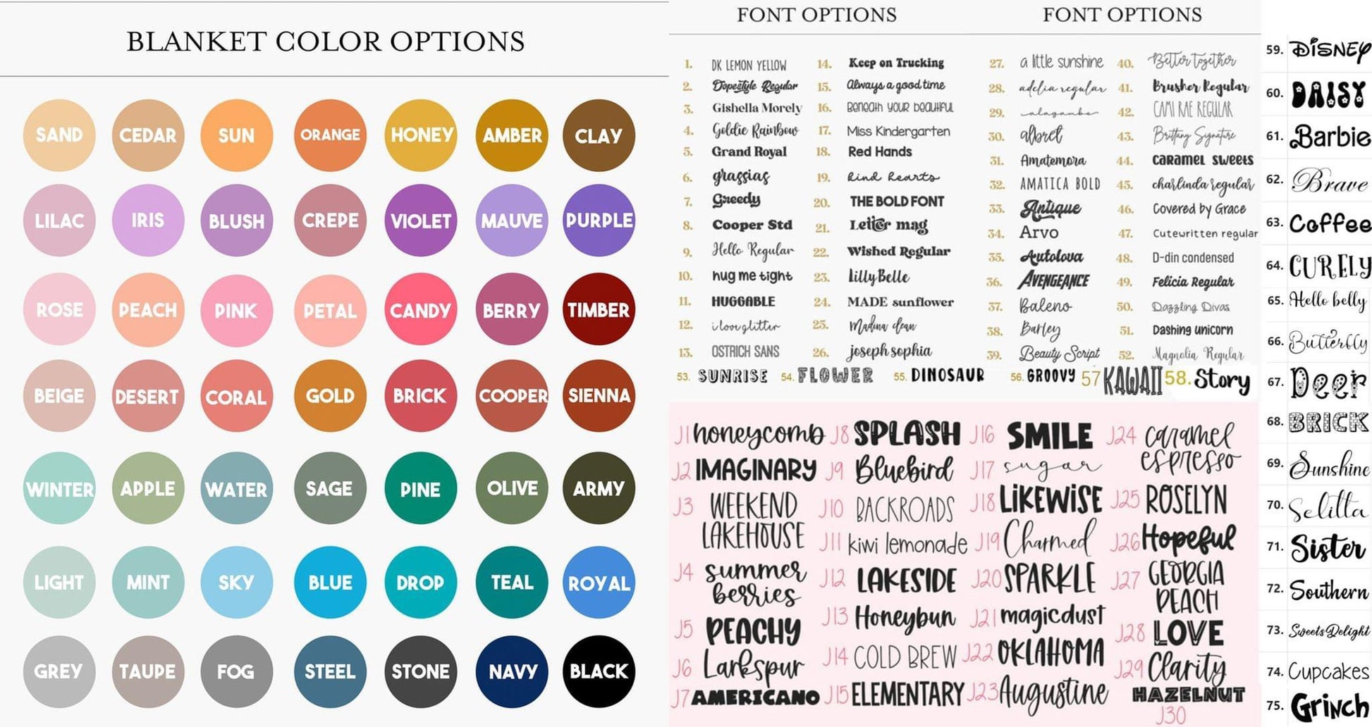 The name will be printed on one side of the blanket and the other size will be white.